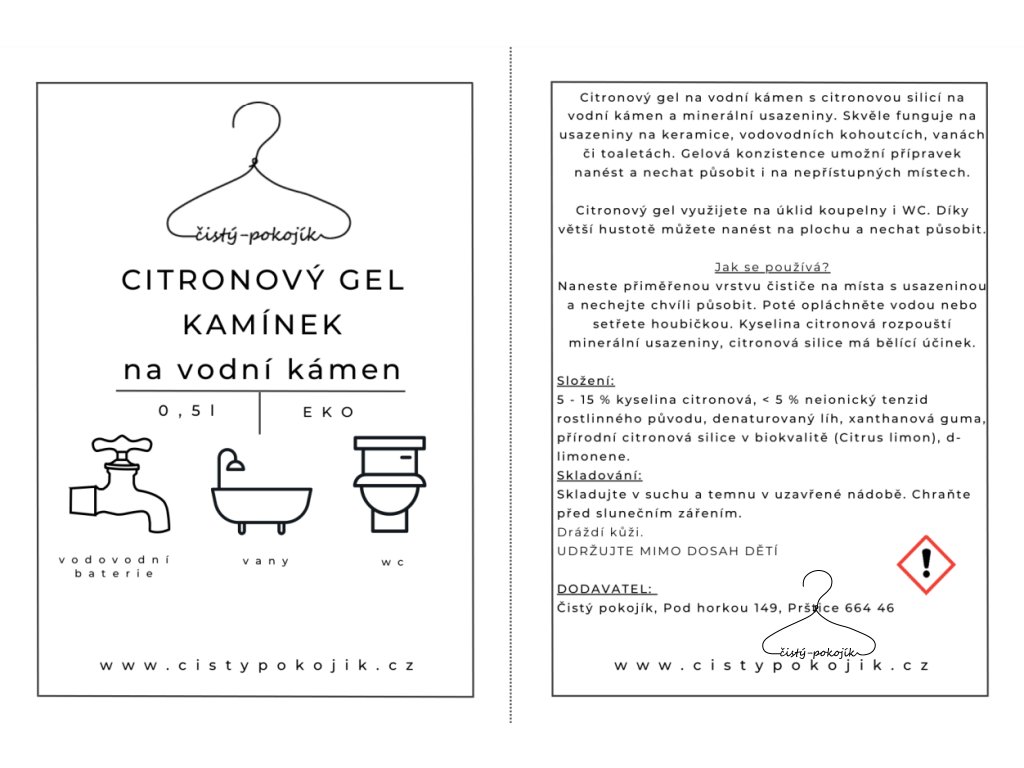 Citronový gel KAMÍNEK s citronovou silicí na vodní kámen a minerální usazeniny