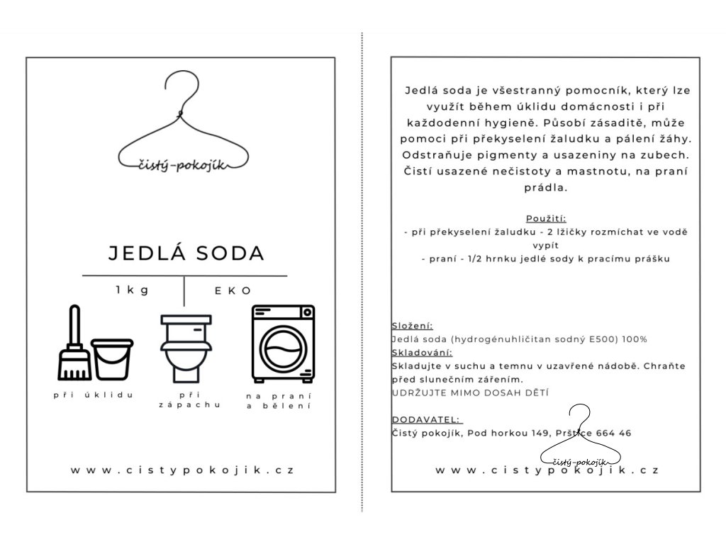 Jedlá soda (hydrogenuhličitan sodný E500) 100 %.